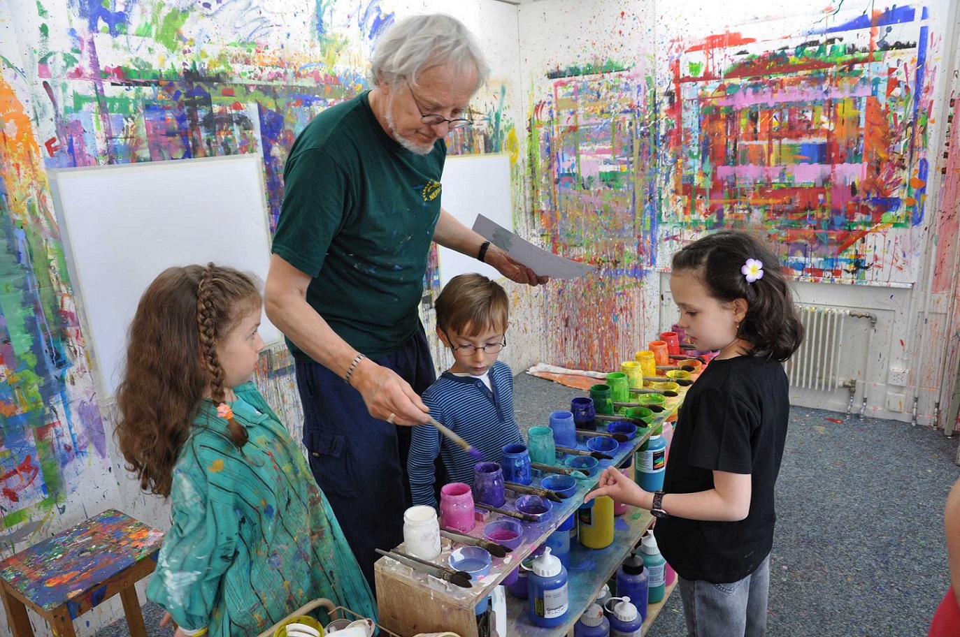 Ohne Druck und Leistungsvergleich dürfen verschiedene Geräte wie Pinsel, Roller, Spachtel oder ihre eigenen Hände und Füsse gebraucht werden. Jedes kann so seine kreativen Ideen verwirklichen.